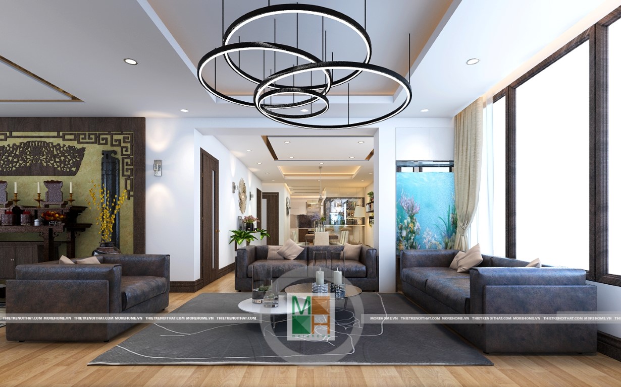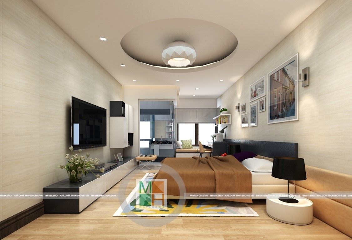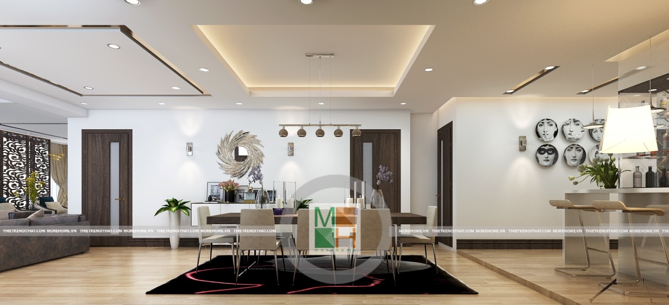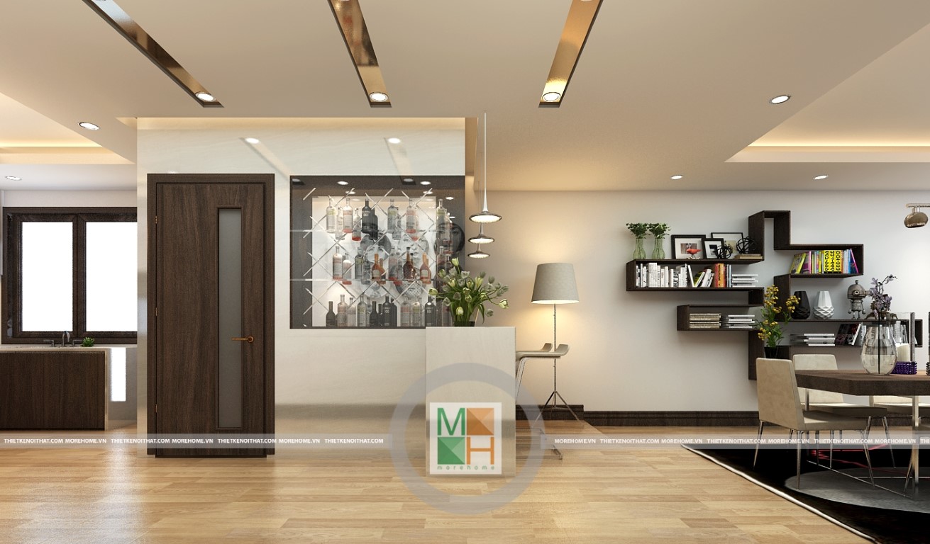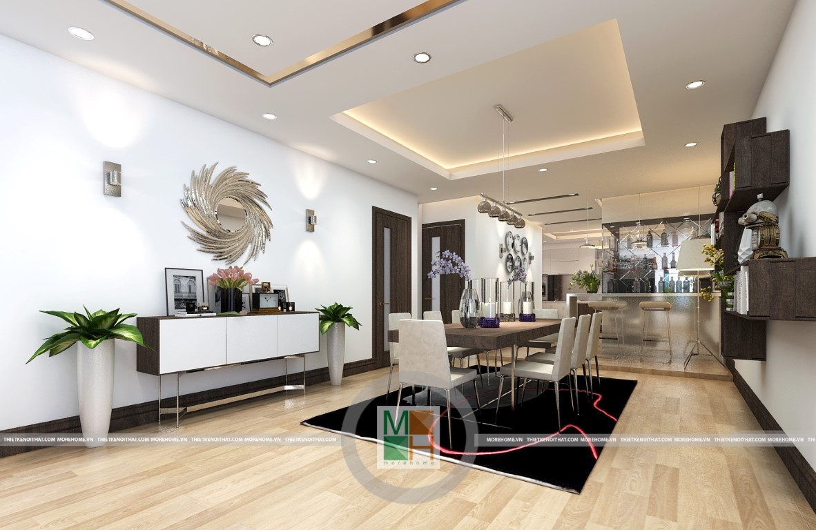 Không gian đơn giản, rộng rãi tạo nên một không gian đầy ánh sáng cho căn hộ chung cư.
