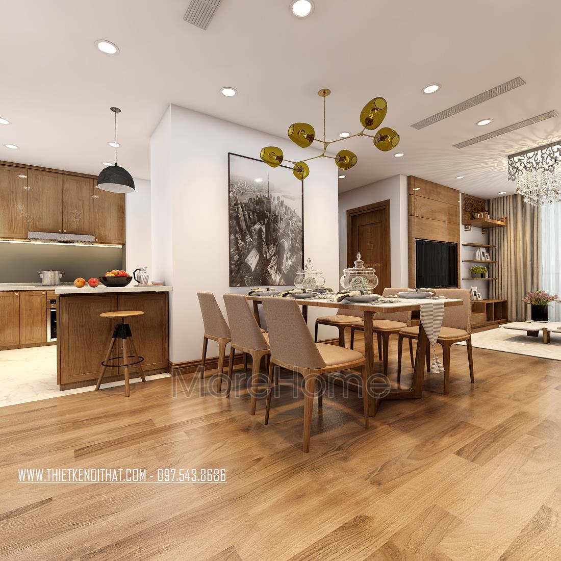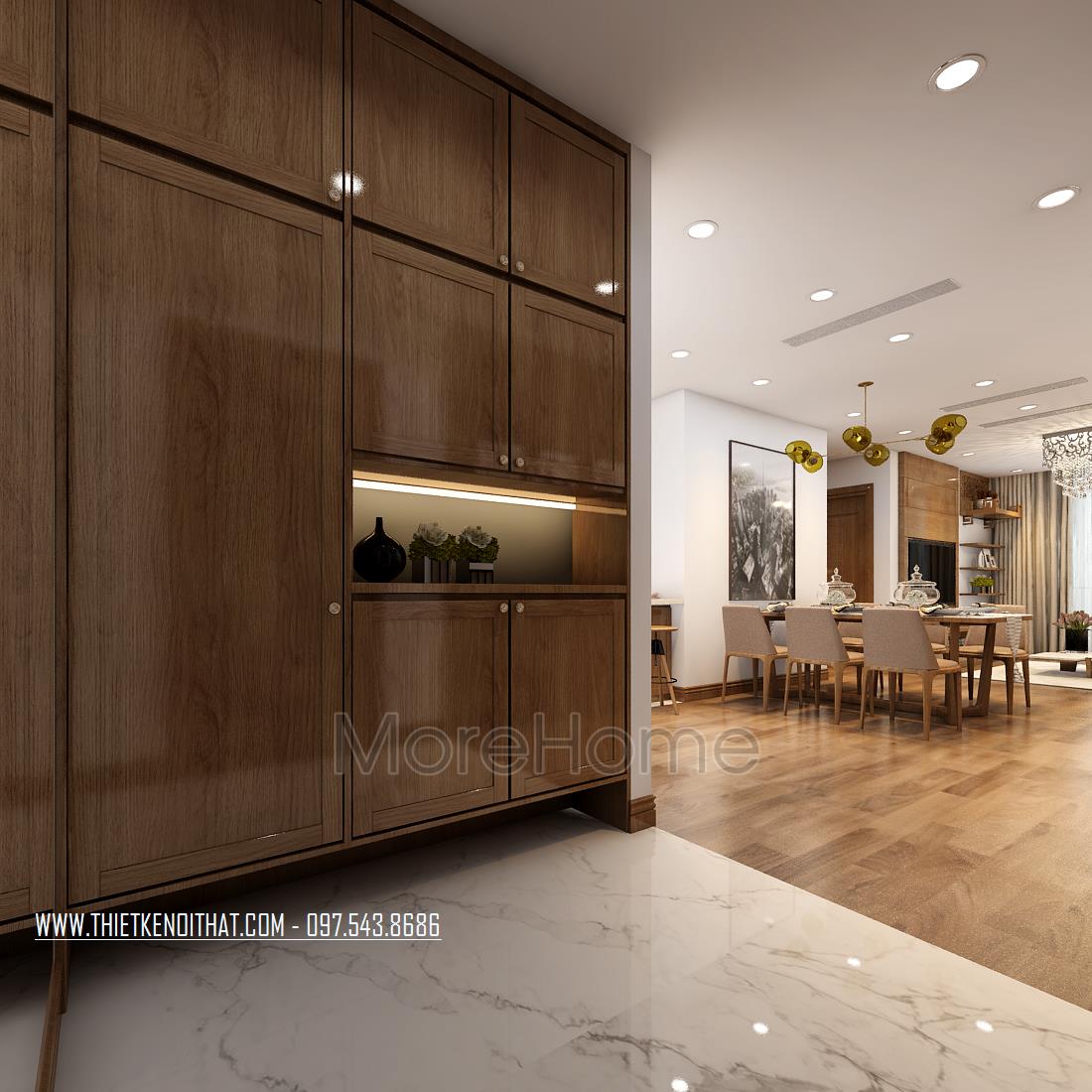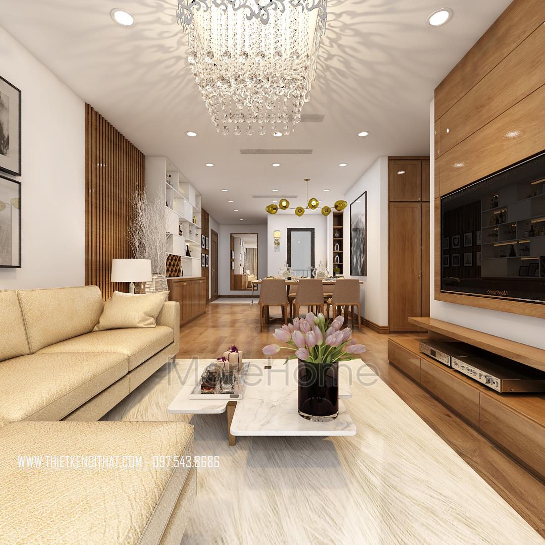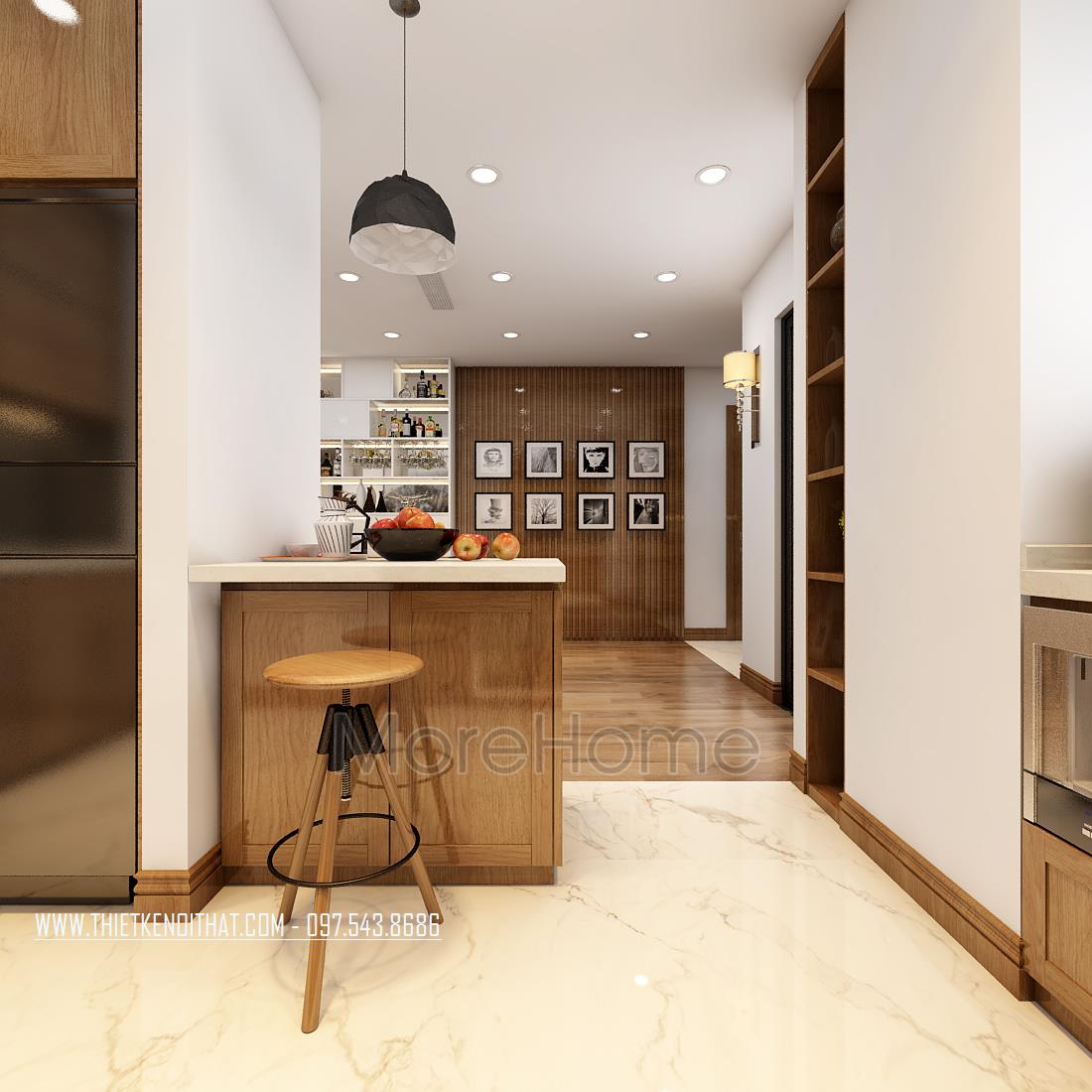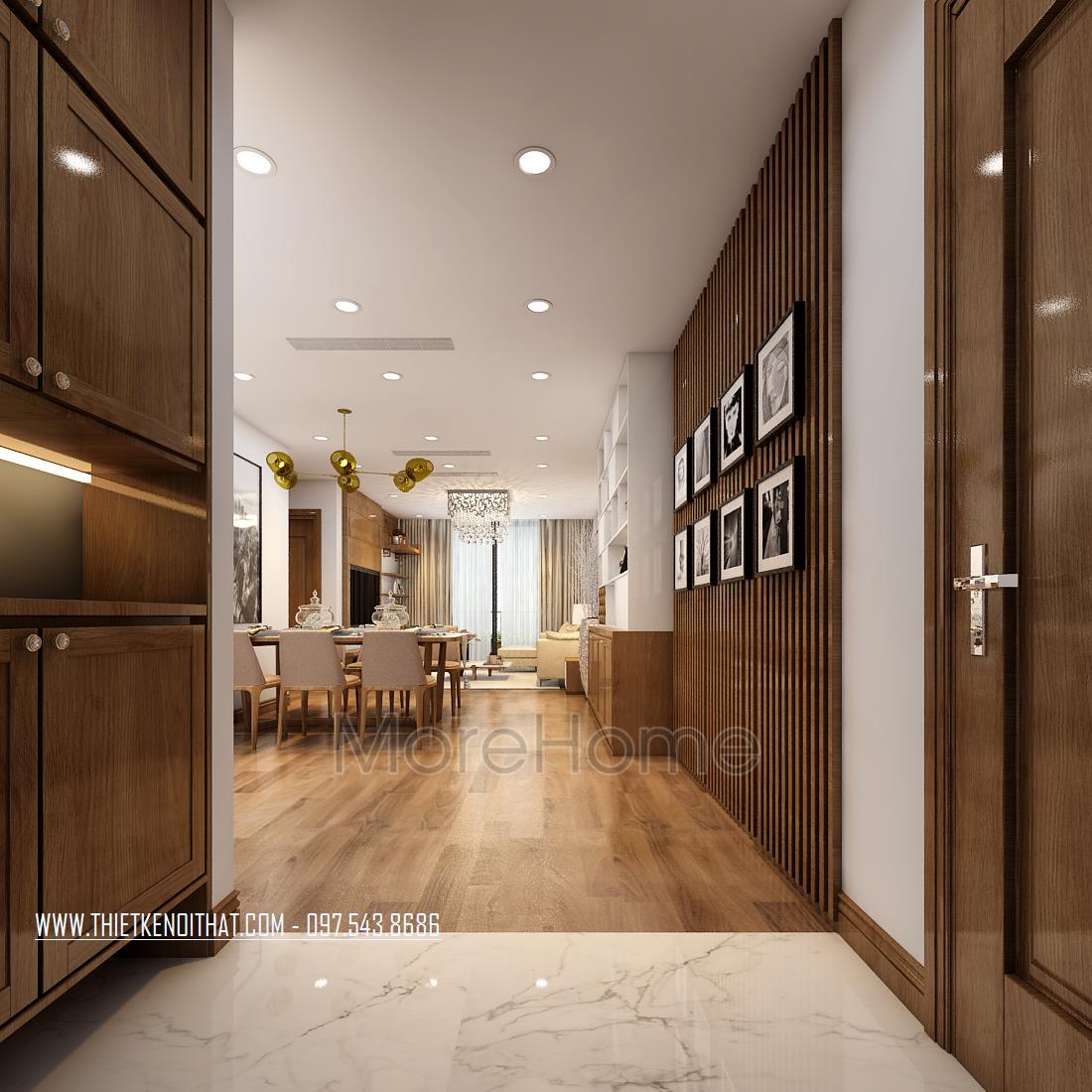 Thiết kế chung cư hiện đại với gỗ óc chó tại Ngoại Giao Đoàn