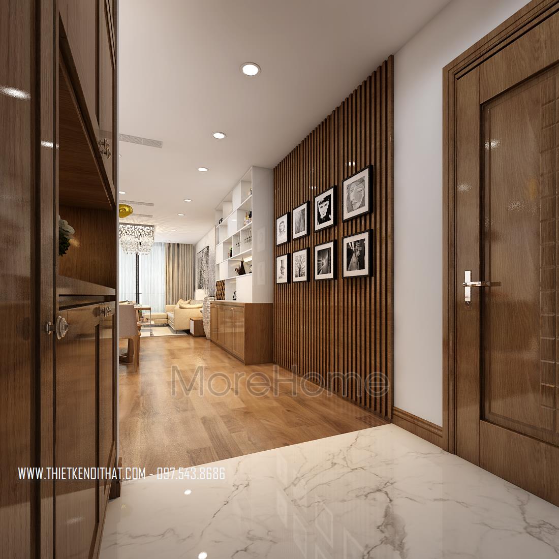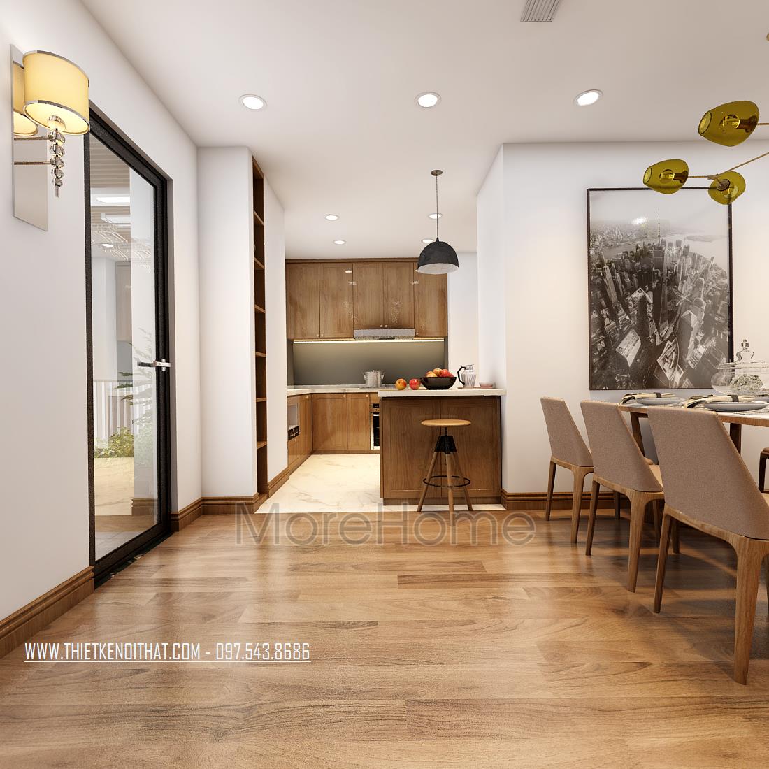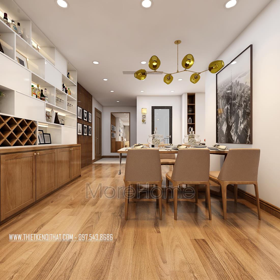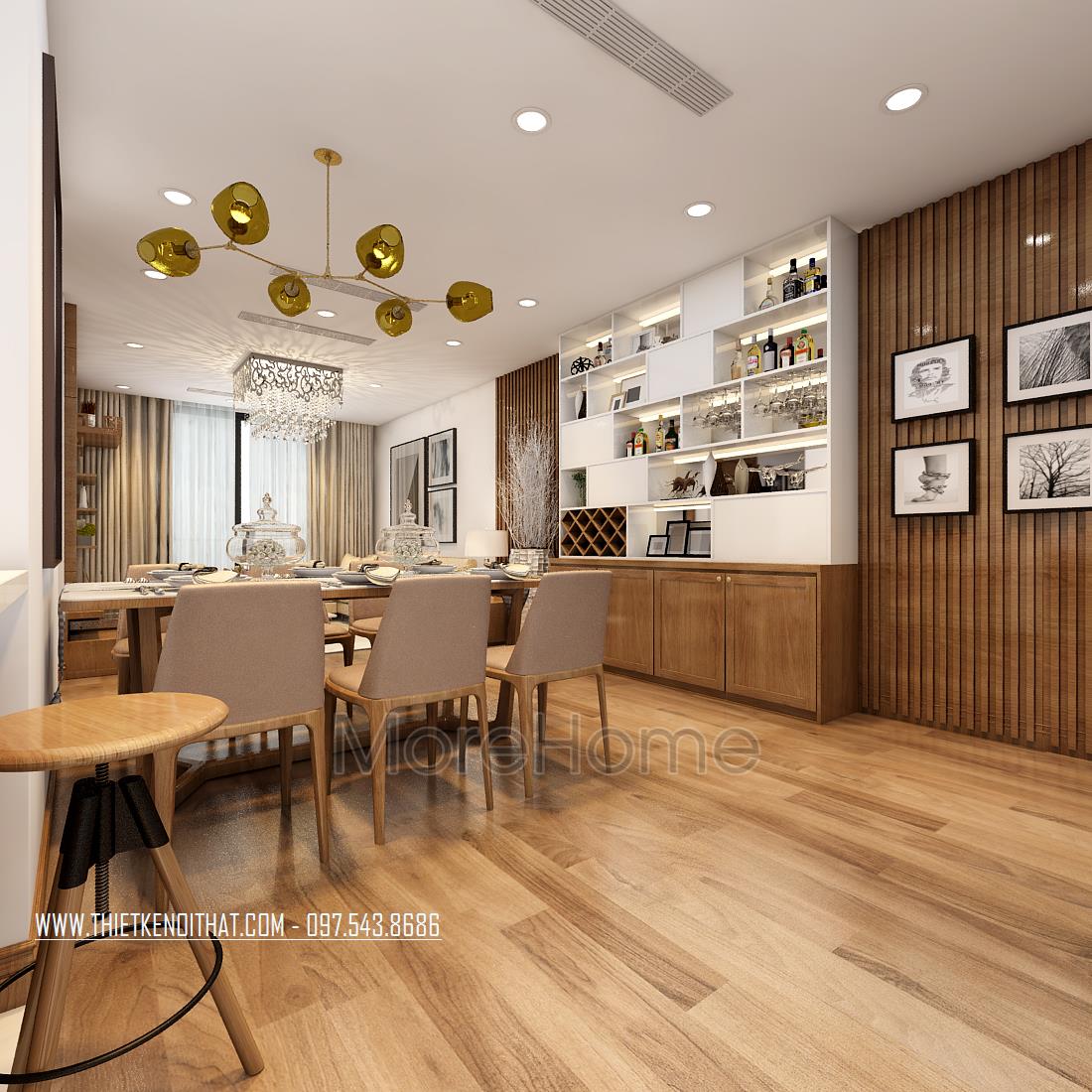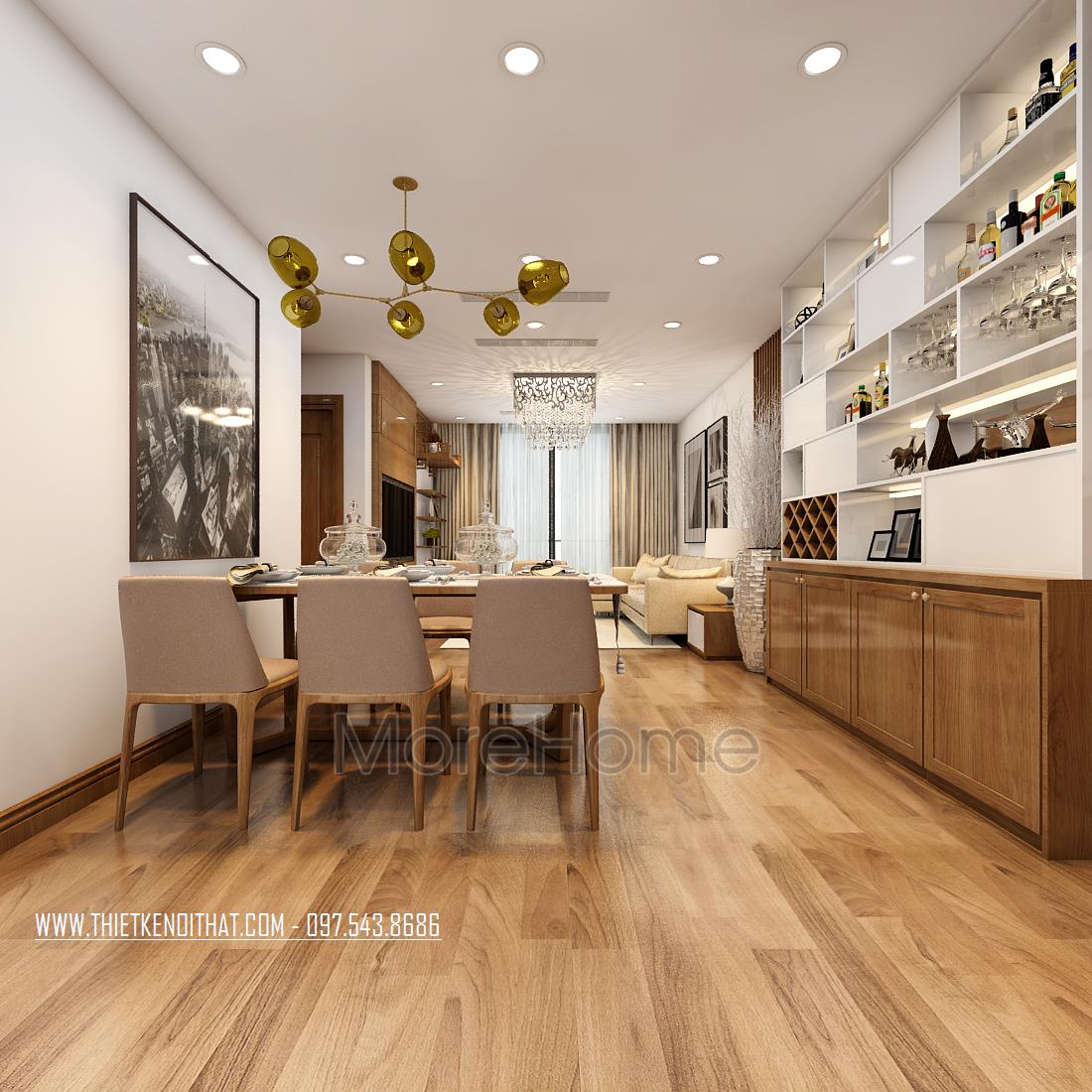 Thiết kế chung cư hiện đại với gỗ óc chó tại Ngoại Giao Đoàn