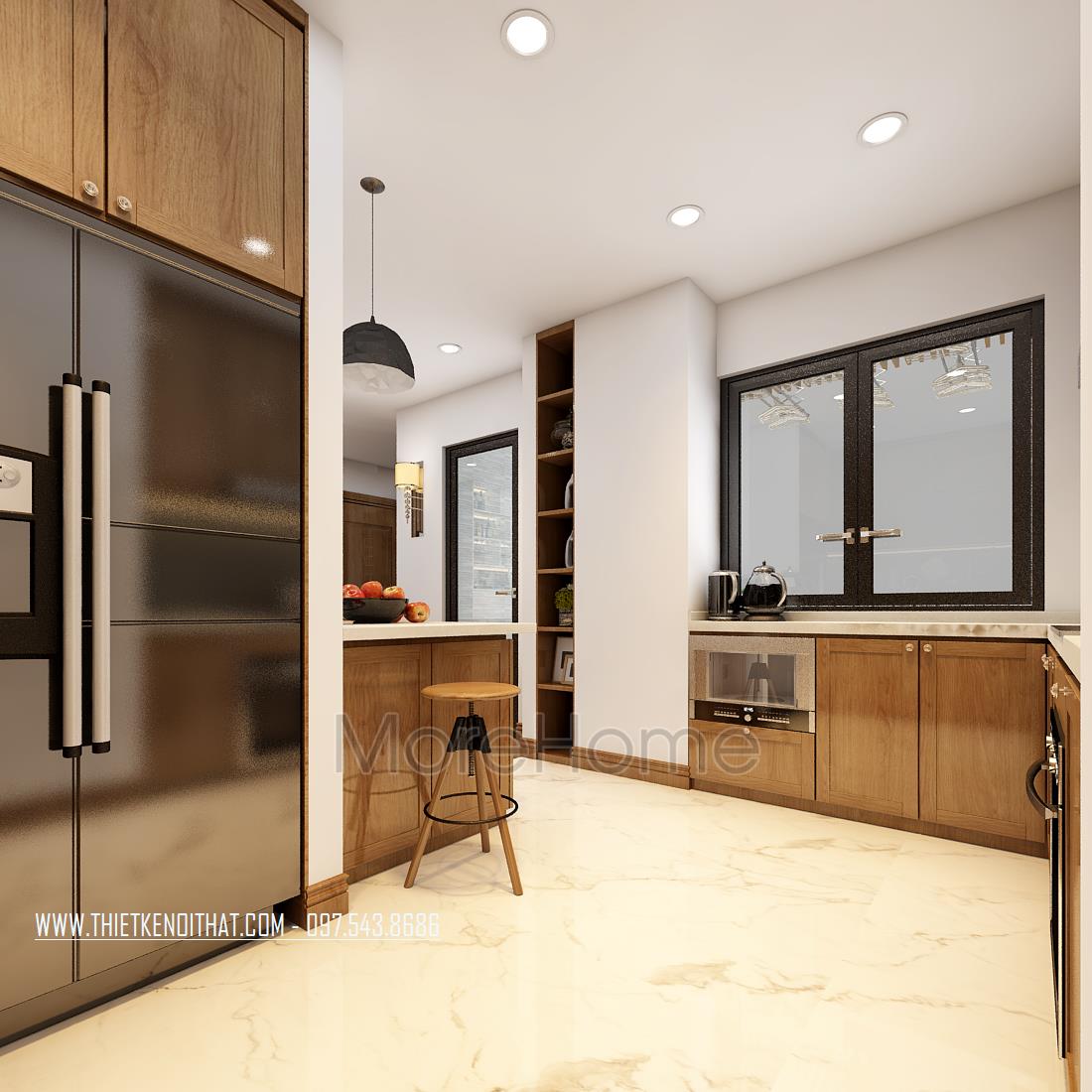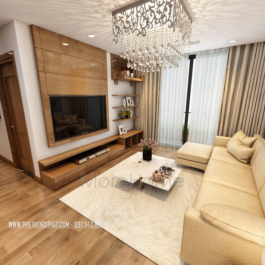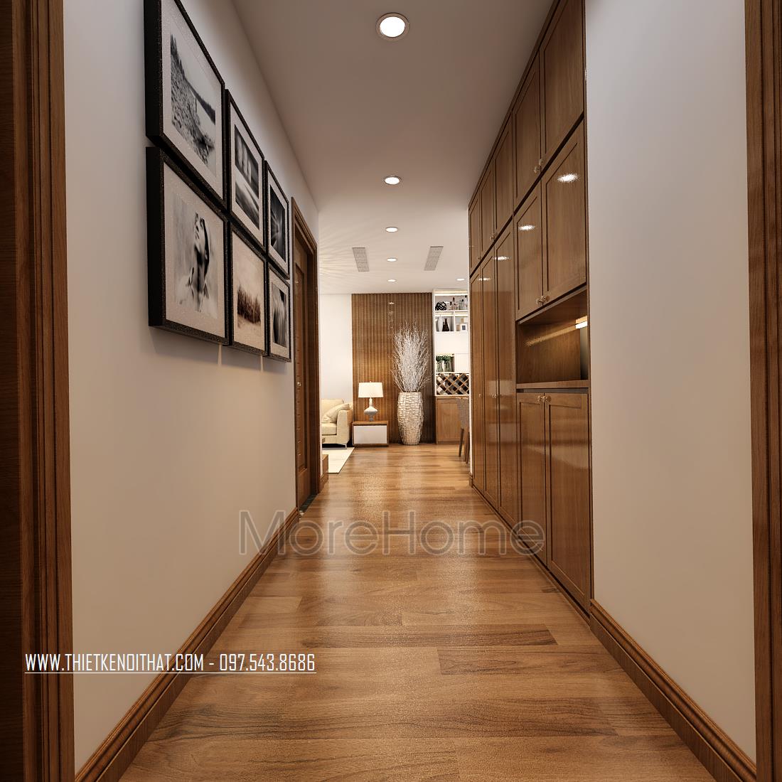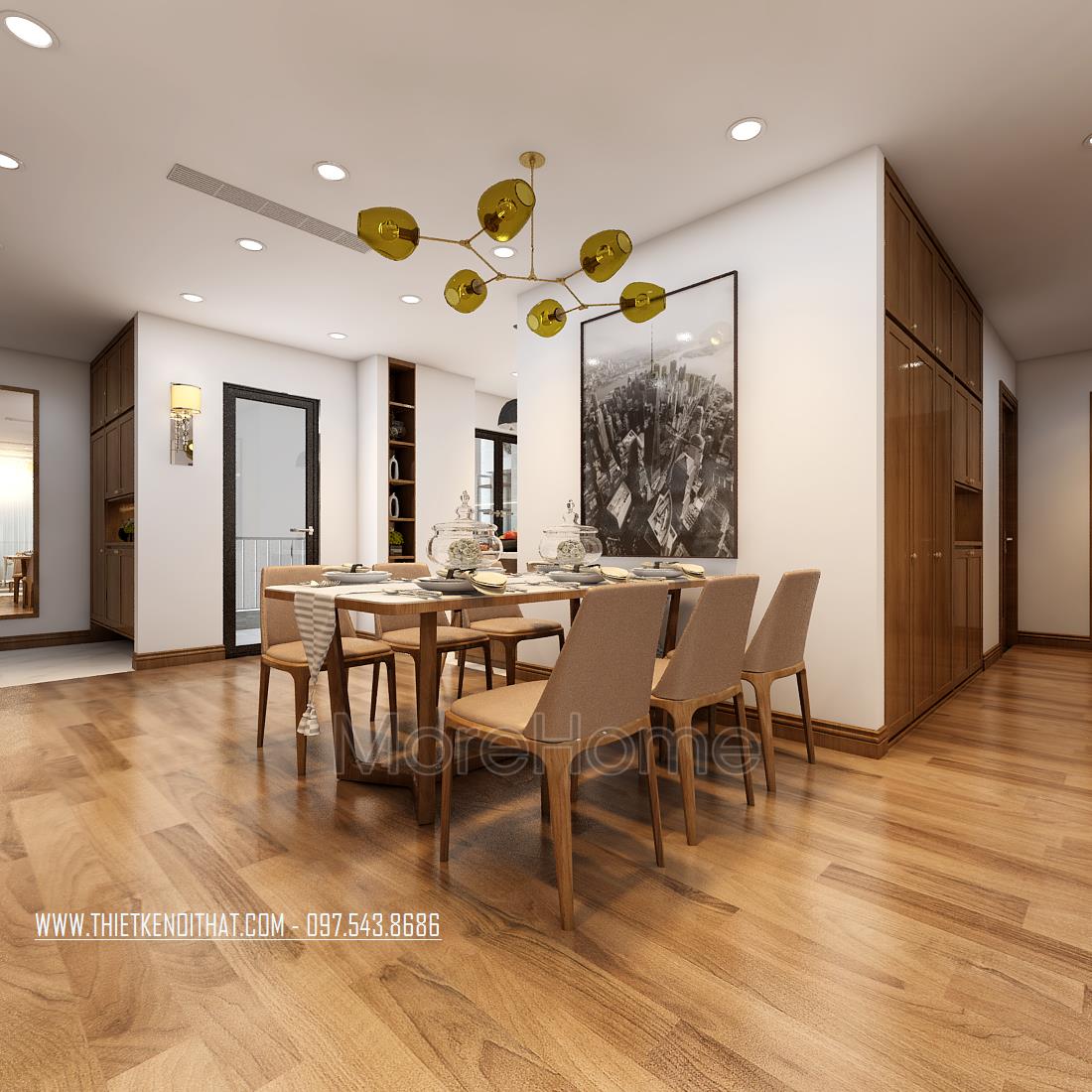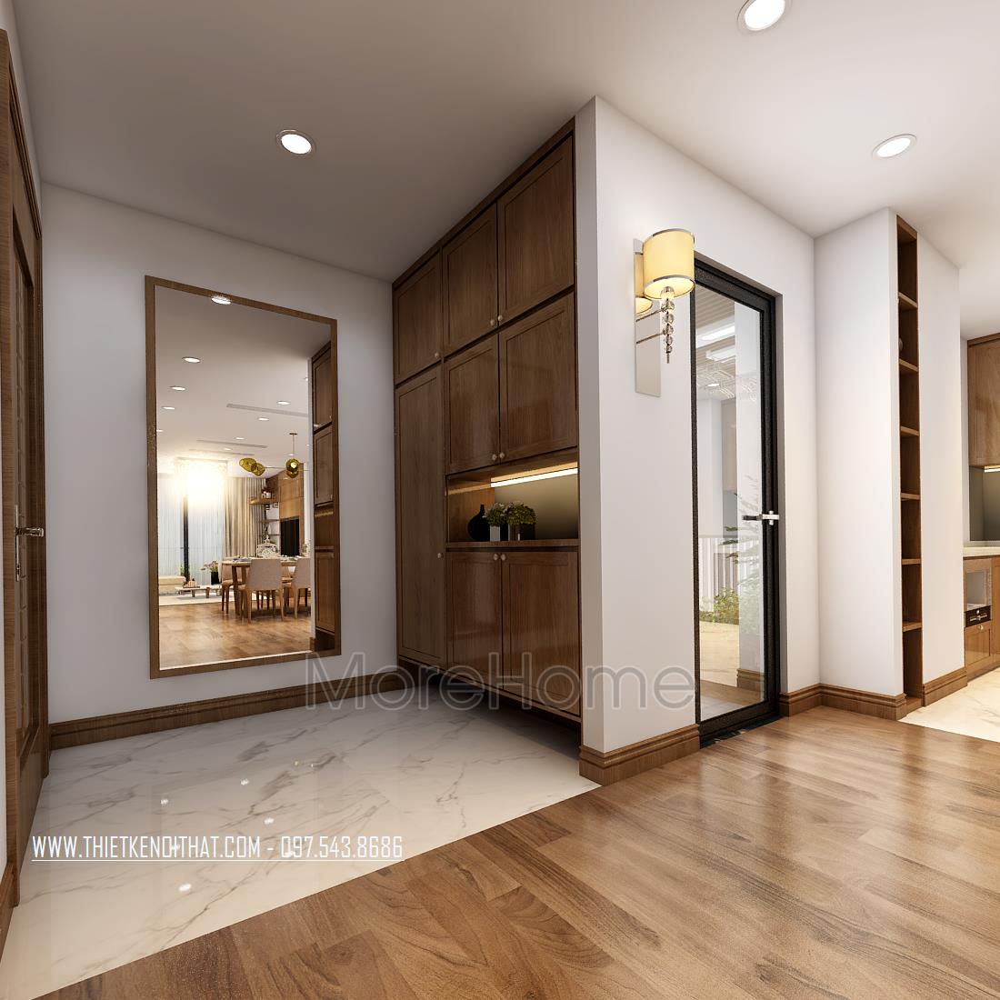 Thiết kế chung cư hiện đại với gỗ óc chó tại Ngoại Giao Đoàn