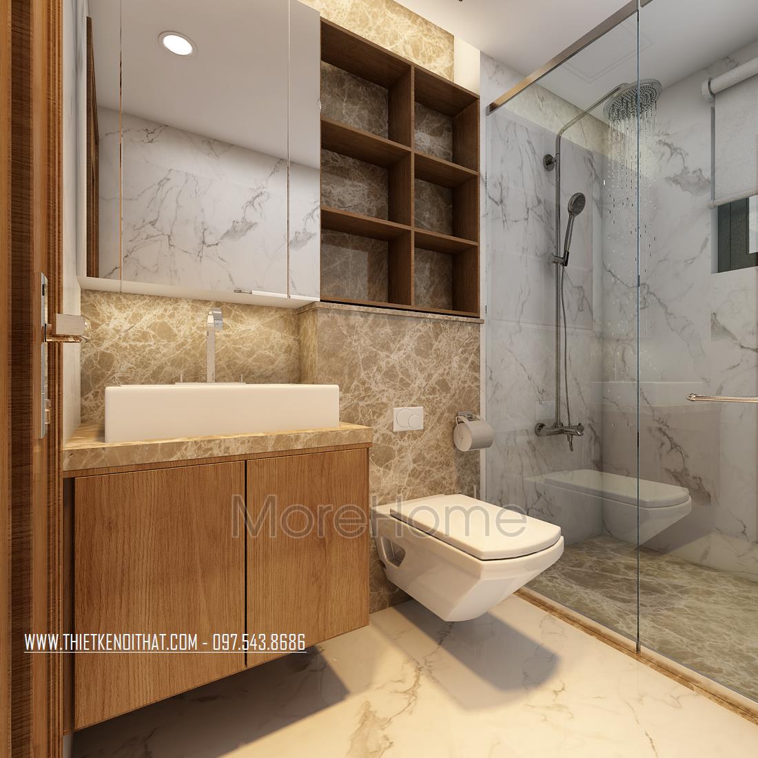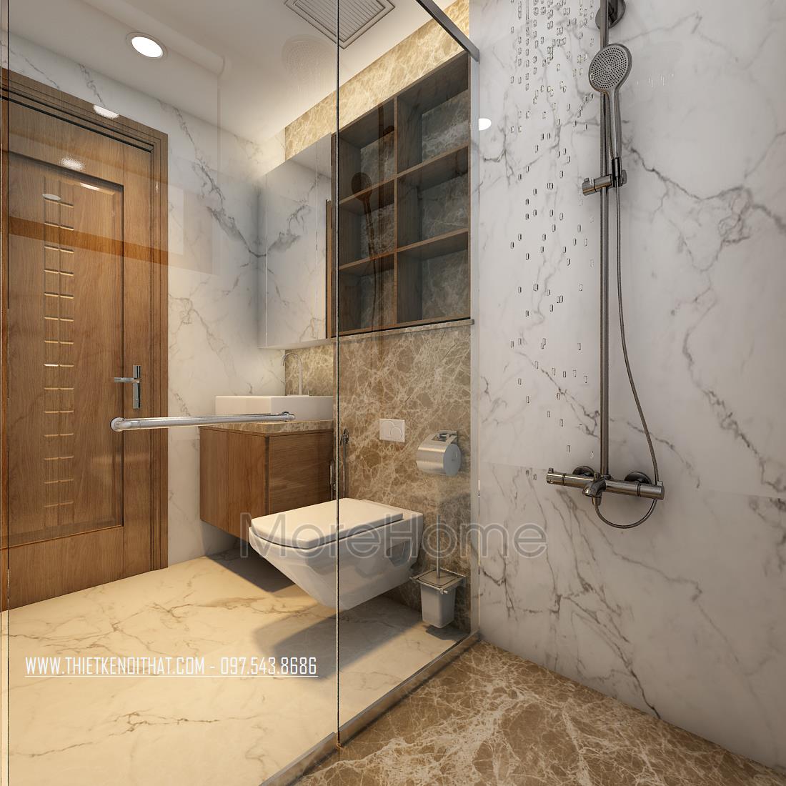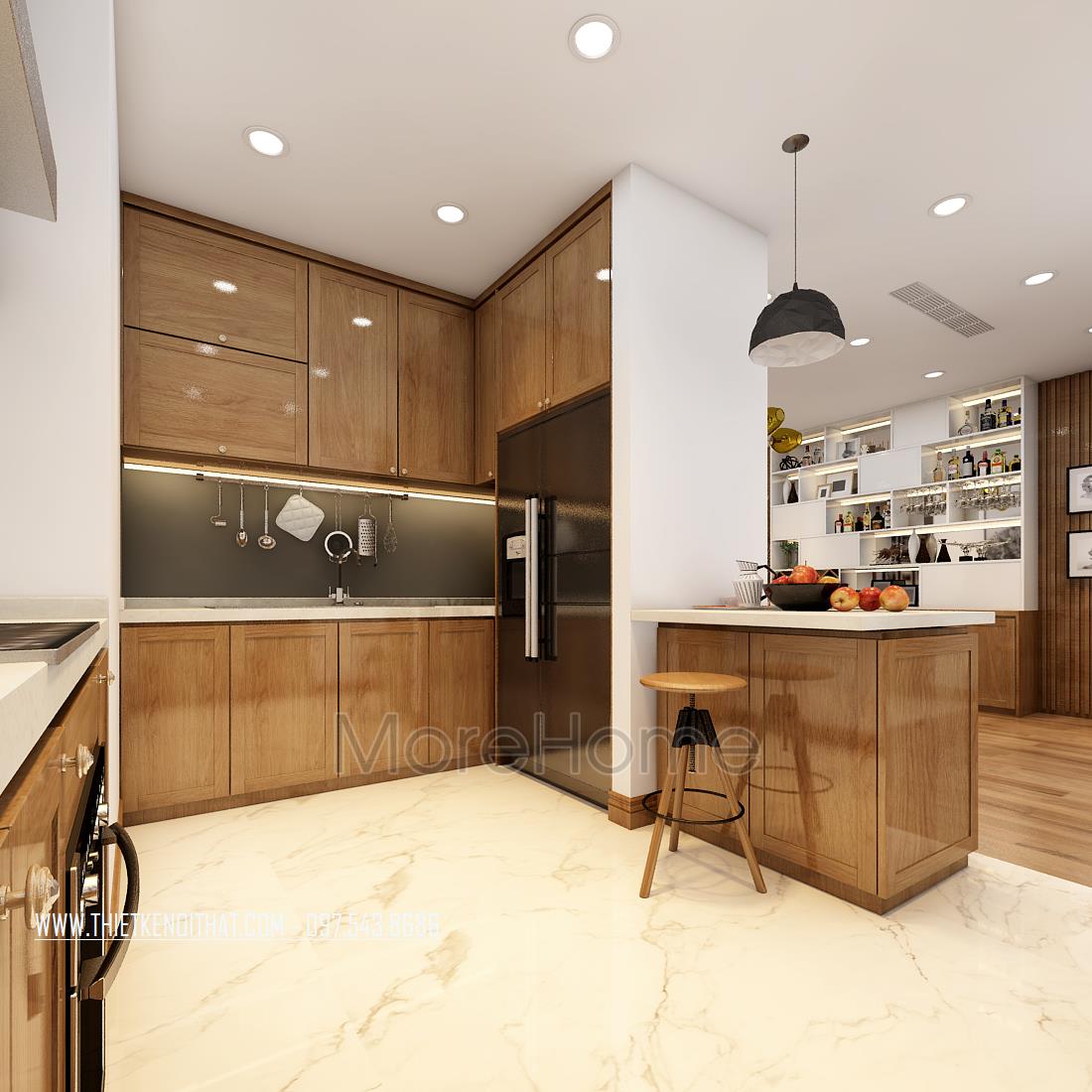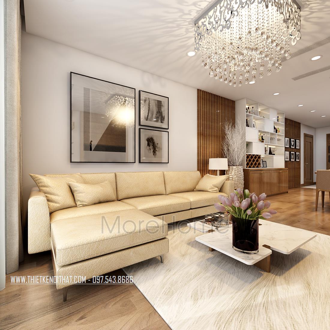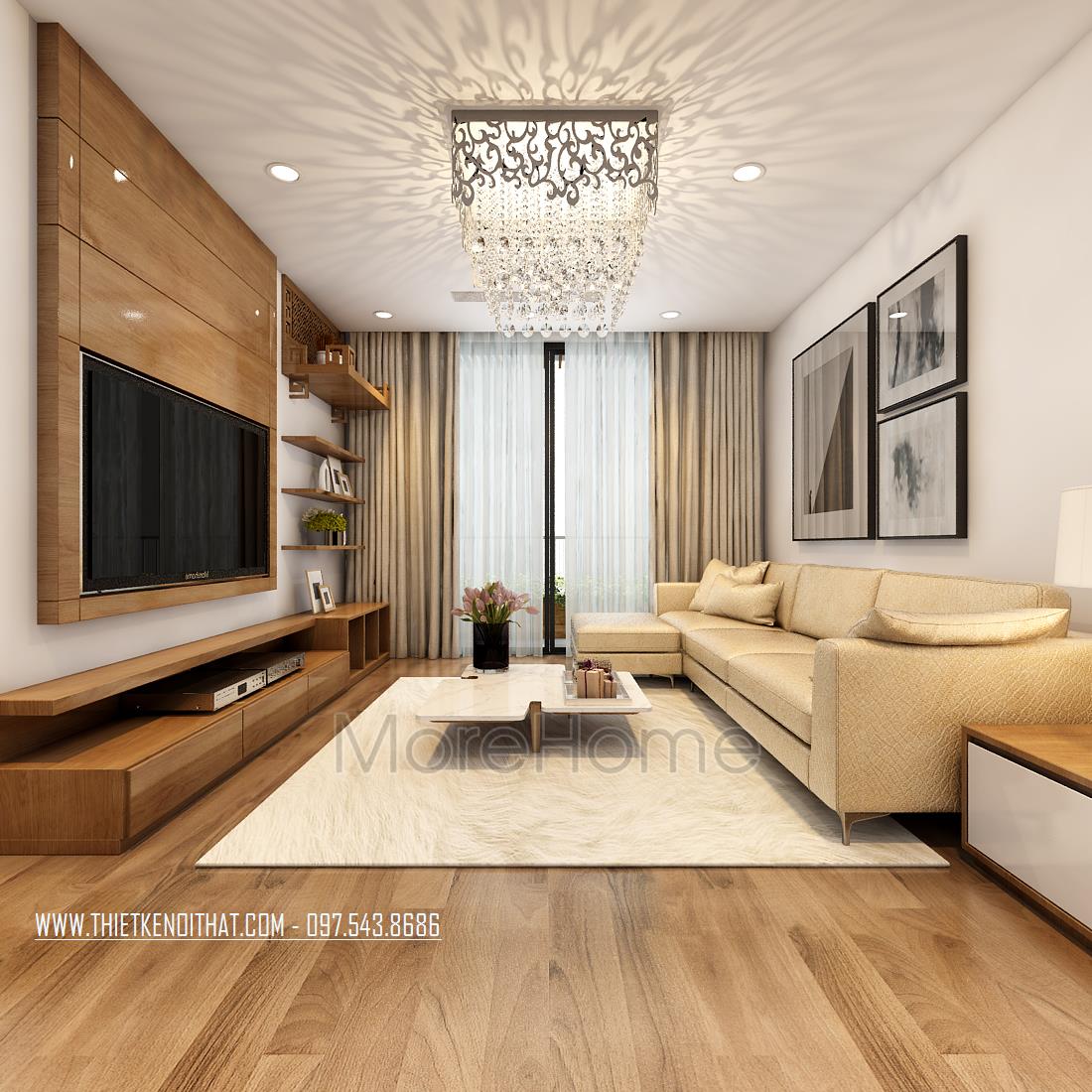 Thiết kế chung cư hiện đại với gỗ óc chó tại Ngoại Giao Đoàn