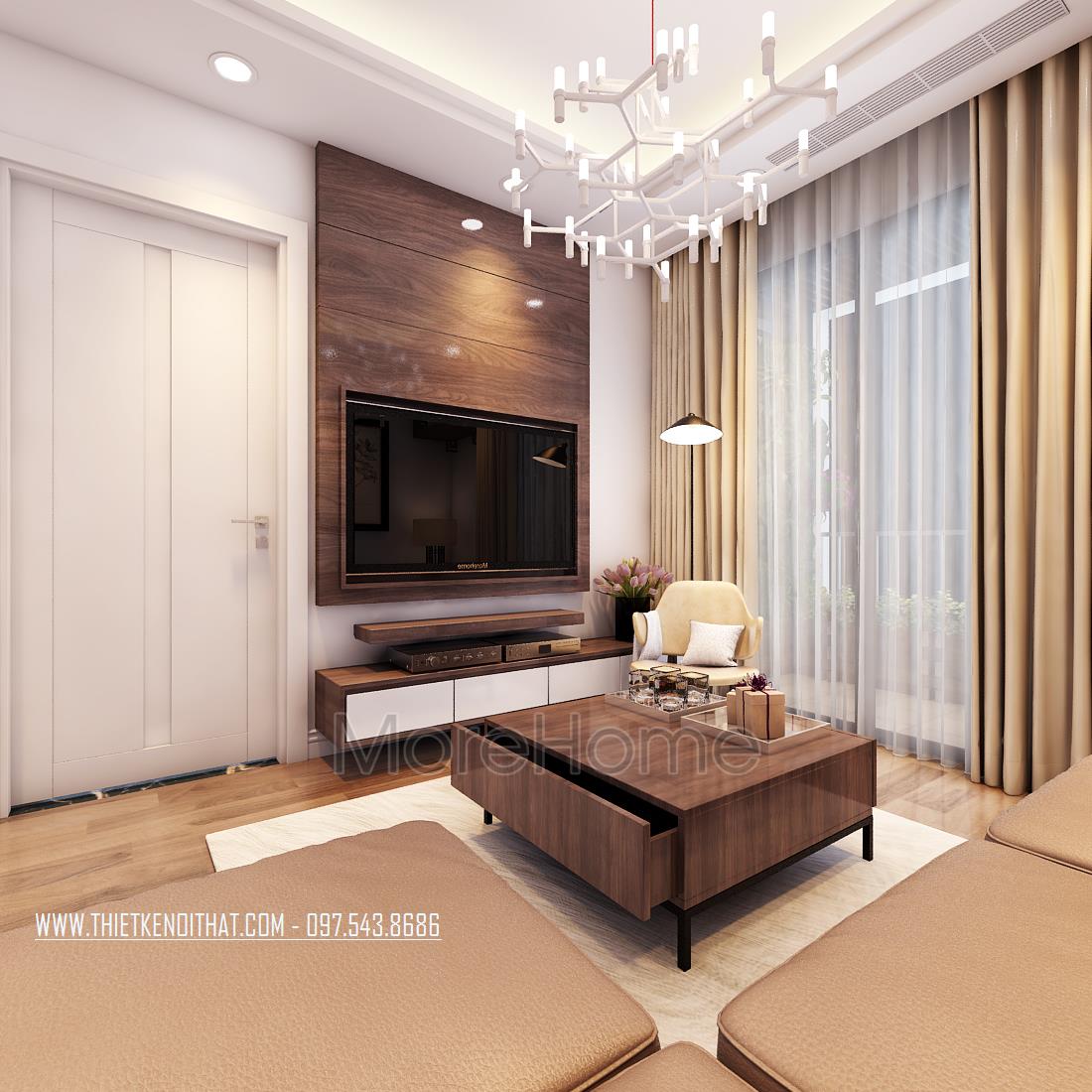Thiết kế nội thất chung cư gỗ óc chó tại Ngoại Giao Đoàn
