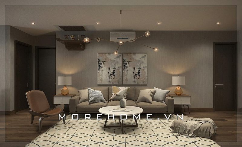 Thiết kế nội thất chung cư hiện đại sử dụng tone màu sáng cho không gian phòng khách thêm trẻ trung và năng động