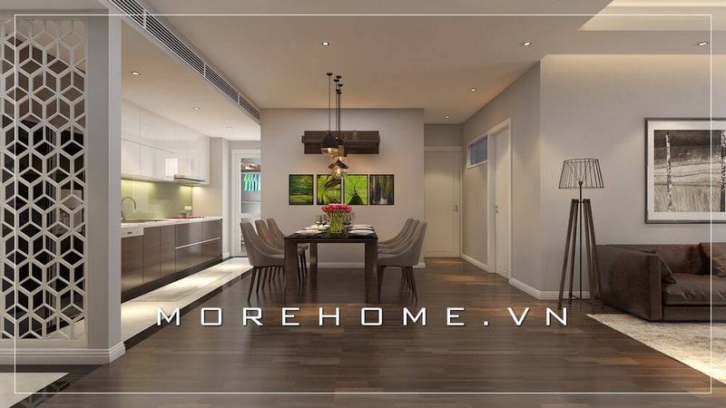 Thiết kế nội thất phòng bếp chung cư hiện đại và tiện nghi với gỗ công nghiệp