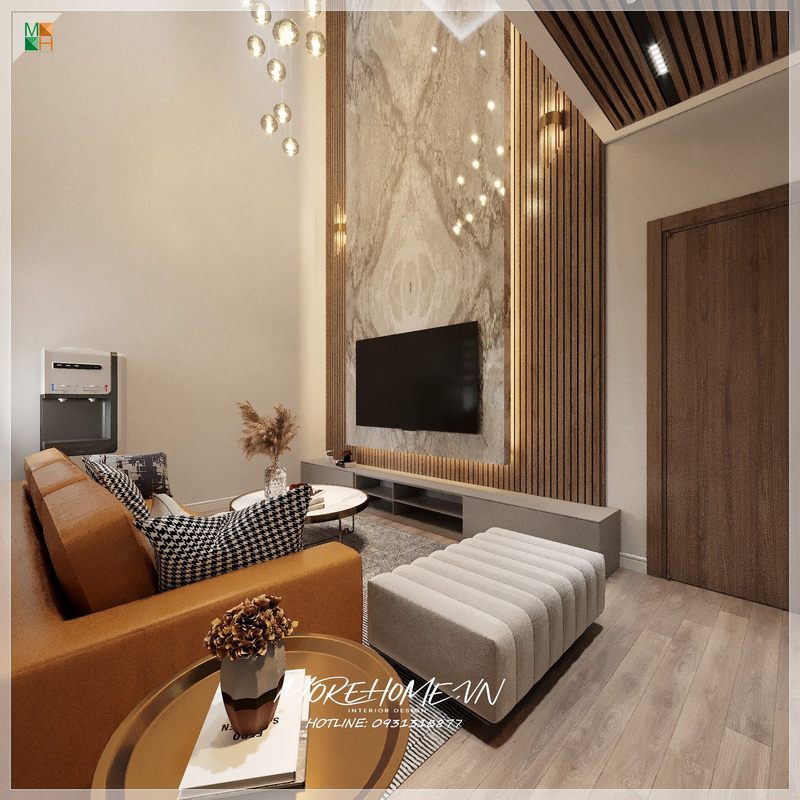 Sự pha trộn độc đáo giữa ghế sofa văng cùng ghế sofa đơn và đôn sofa, kết hợp cùng bàn trà chân kim loại mặt đá nhân tạo cao cấp mang đến không gian phòng khách trẻ trung hiện đại cho chung cư, nhà phố, biệt thự