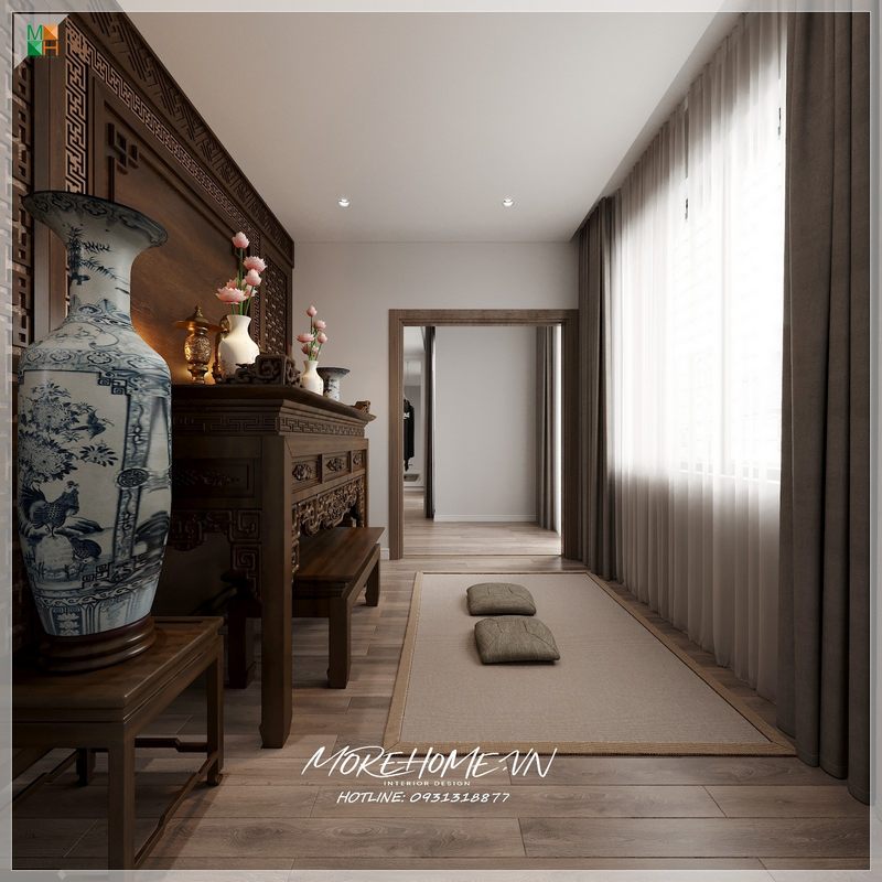 Tủ thờ được thi công phù hợp với không gian nhà, có tính năng sử dụng và độ đẹp cao.