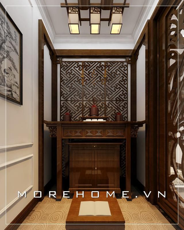 Bàn thờ phật cao cấp từ gỗ sồi được thiết kế để phù hợp với nhà phố hiện đại.